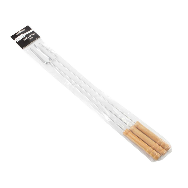 Ustensile pentru barbecue, grill, gratar, furculite lungi, maner lemn, set 3 buc, 48 cm, Perfect Home