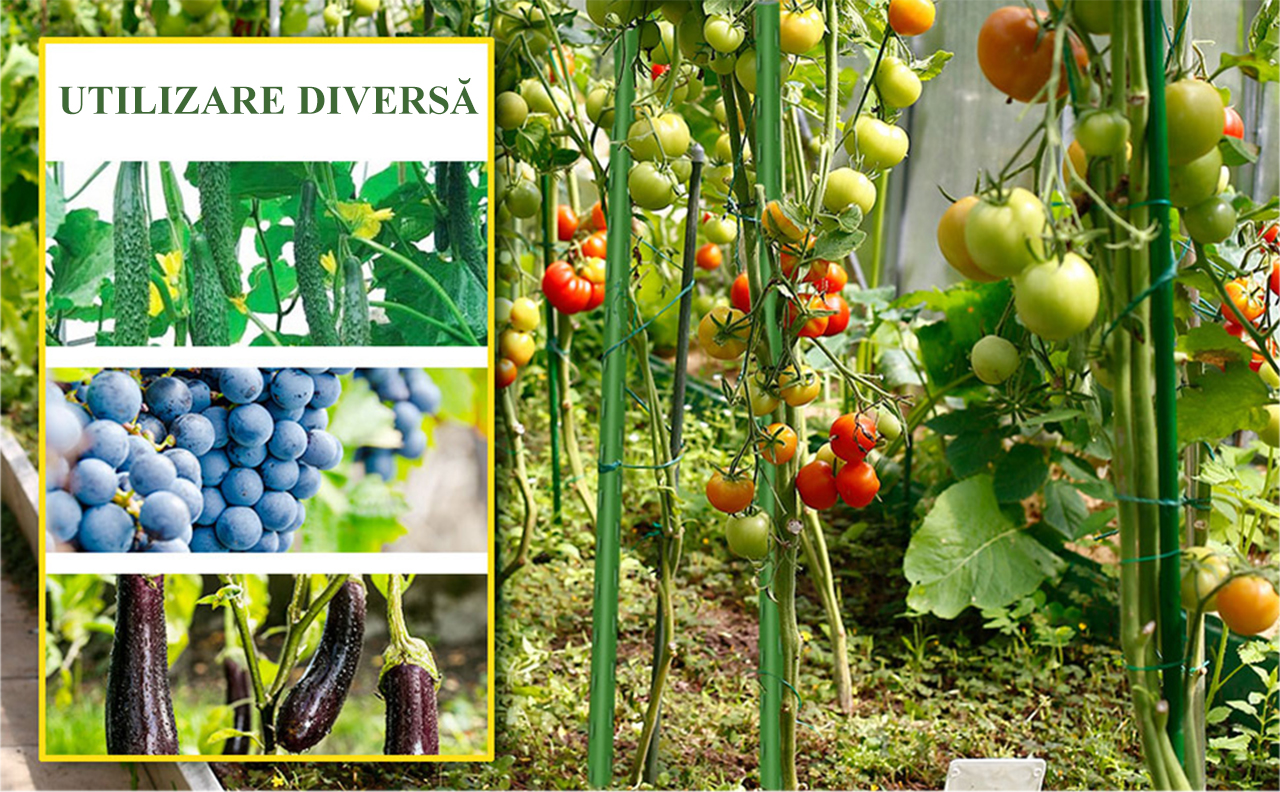 - Asigura o crestere verticala sanatoasa a plantelor, prevenind caderea si ruperea.