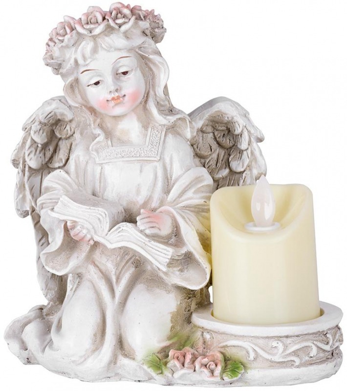 Decoratiunea sub forma de inger cu o carte si o lumanare este un decor de bun gust si decent potrivit nu numai pentru mormant, ci si ca decor pentru aranjamente funerare.