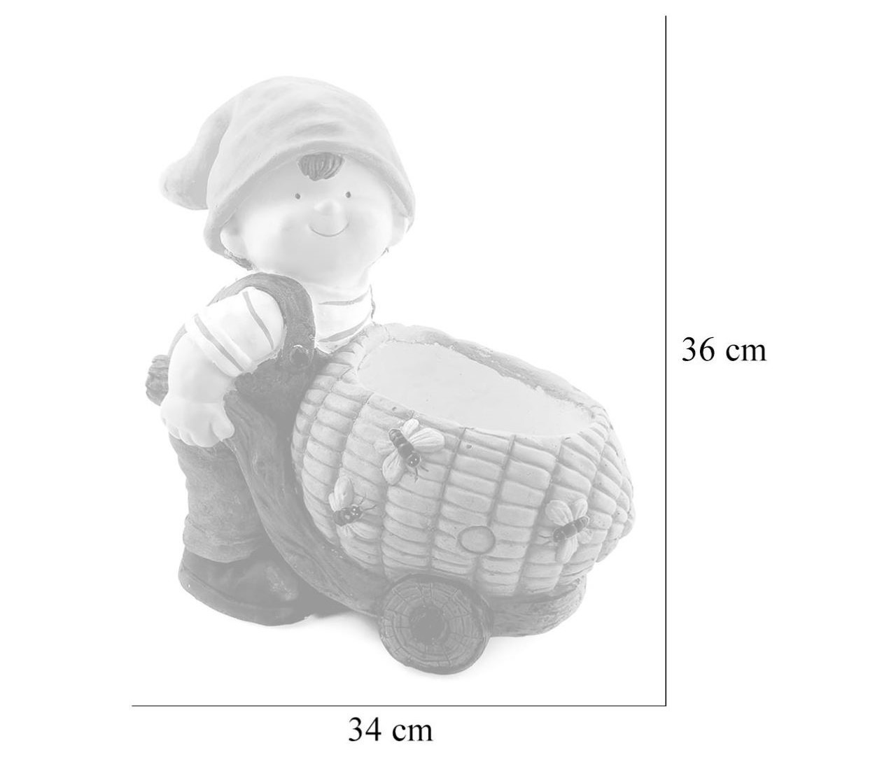 Decoratiune gradina, ceramica, baiat cu stup de albine, 34×36 cm