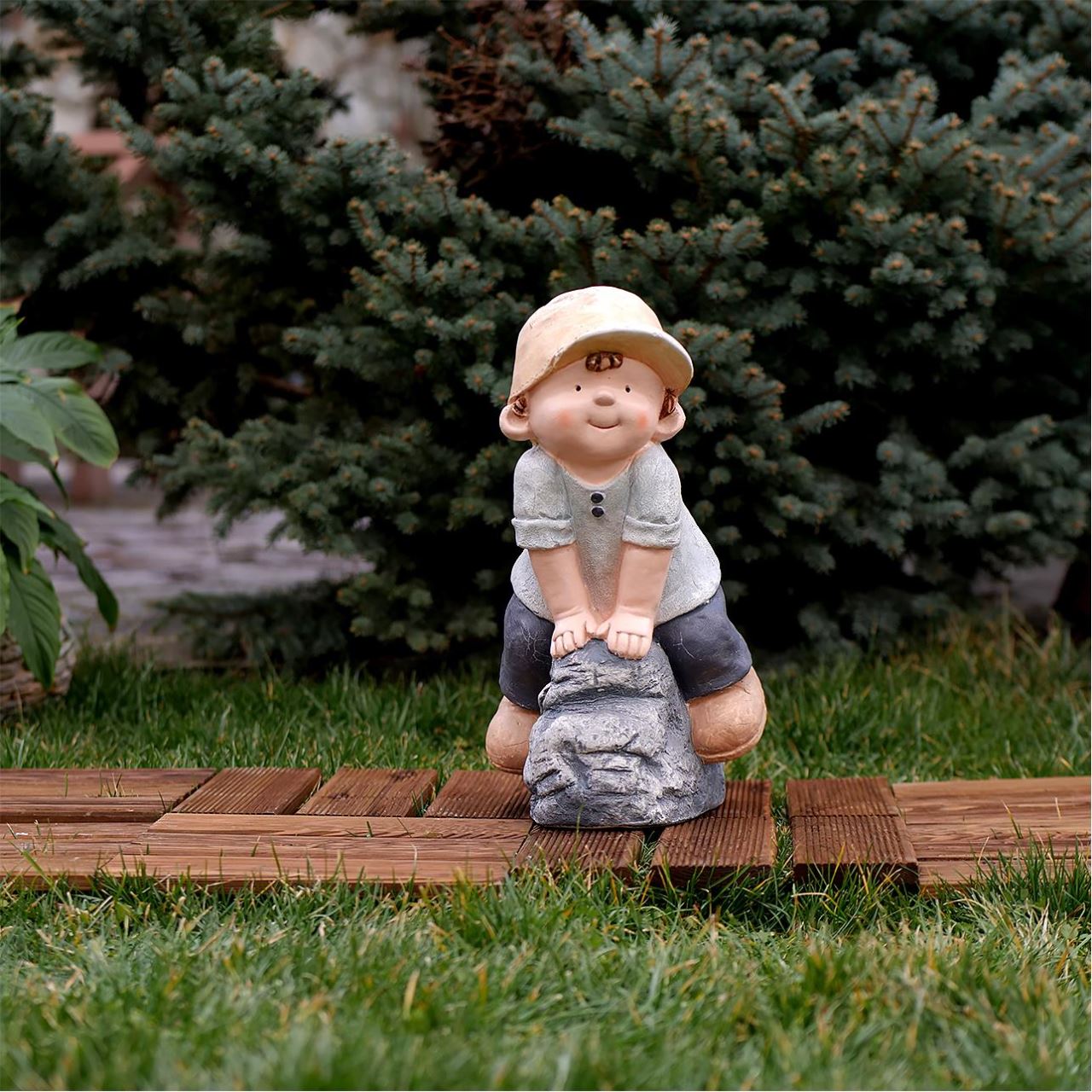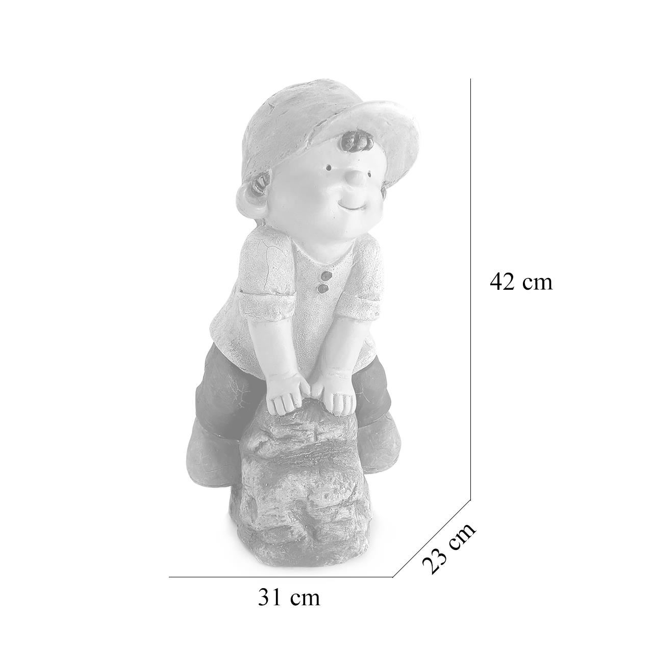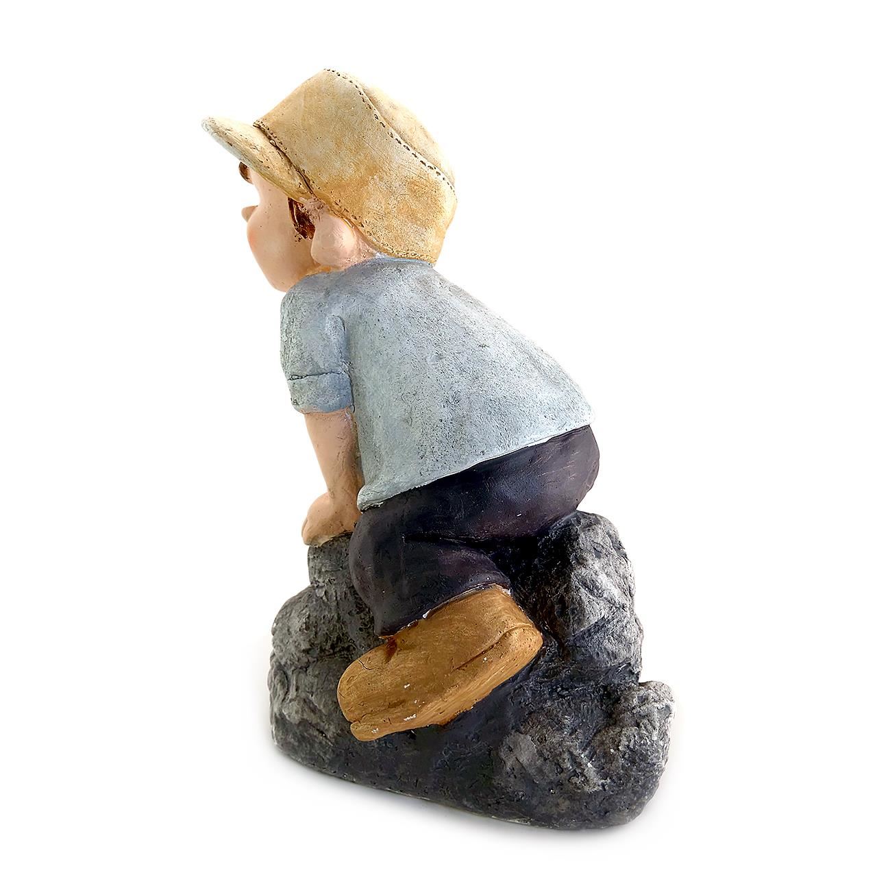 Decoratiune gradina, ceramica, baiat pe piatra, 31x23x42 cm