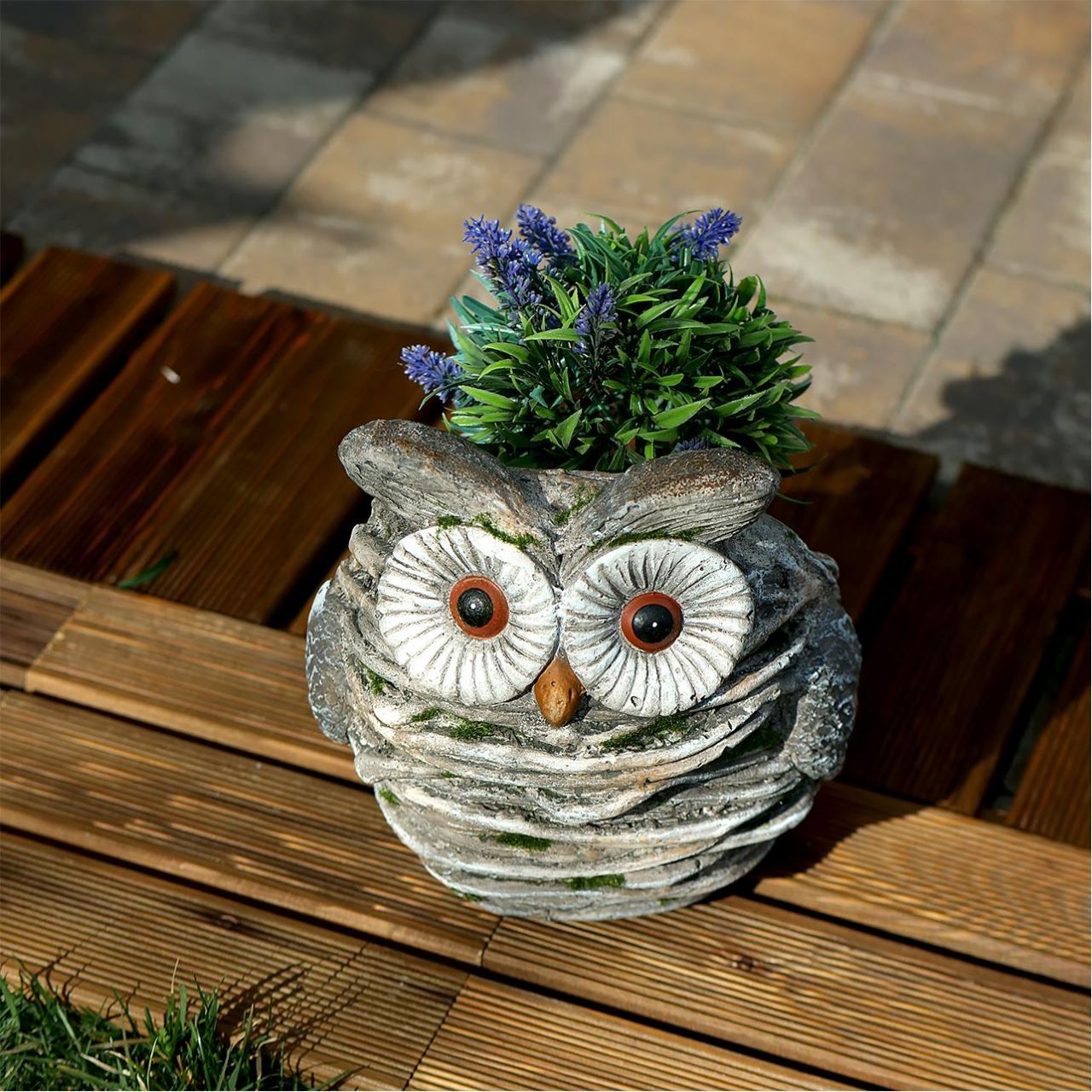 Decoratiune gradina, ceramica, bufnita cu ghiveci, 27.5x24x30 cm
