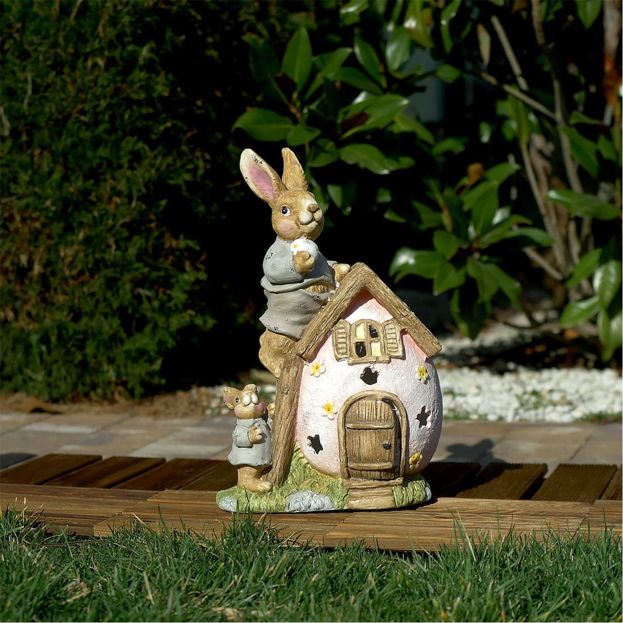 Decoratiune gradina, ceramica, LED, iepure cu casa, 31x22x48 cm