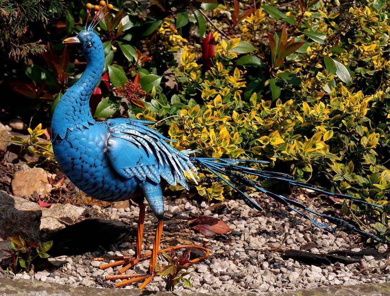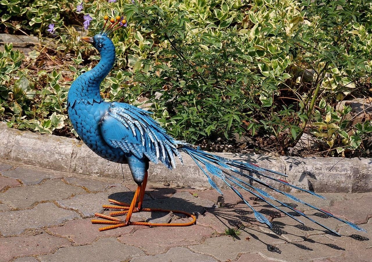 Decoratiune gradina, metalica, paun albastru, 23x70x46 cm