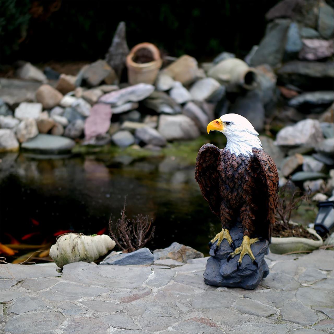 Decoratiune gradina, polirasina, vultur, 33x31x62 cm