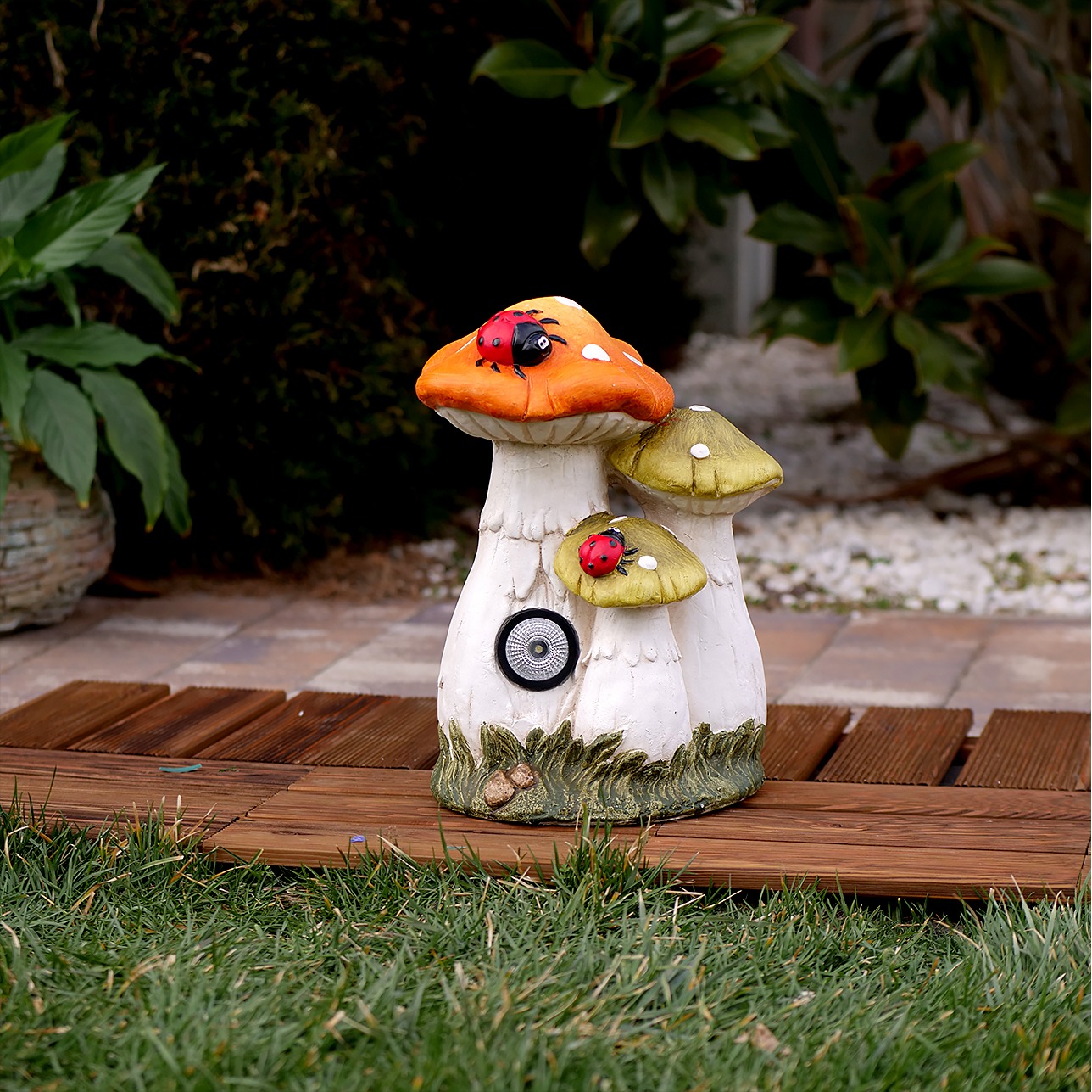 Decoratiune gradina, ceramica, lampa solara, 3 ciuperci, 27.5×20.5×37.5 cm