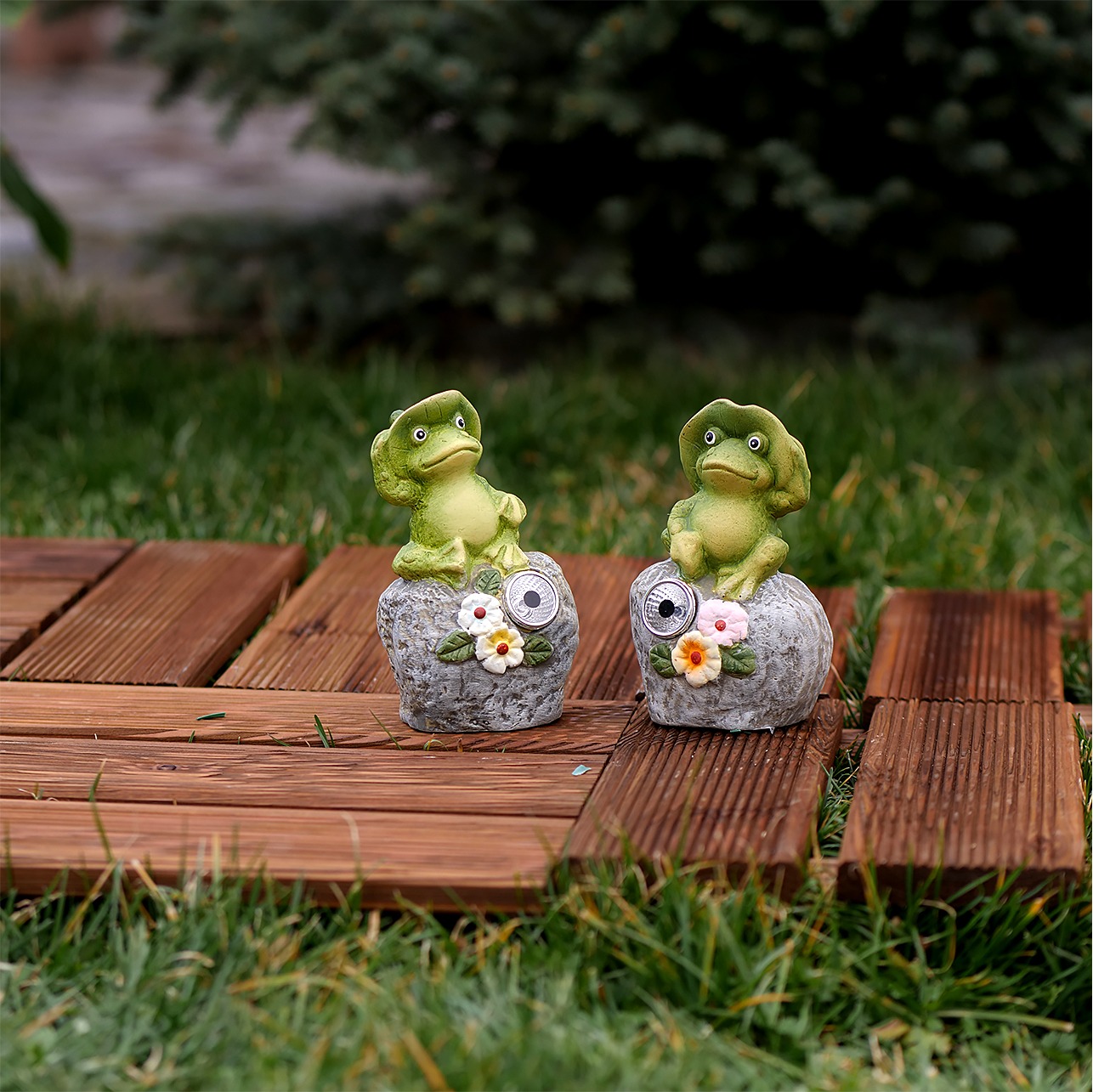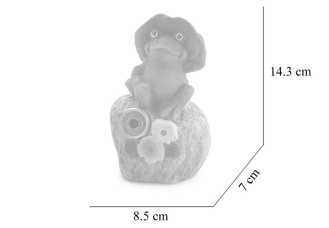 Decoratiune gradina, ceramica, lampa solara, broscuta pe piatra, 8.5x7x14.2 cm