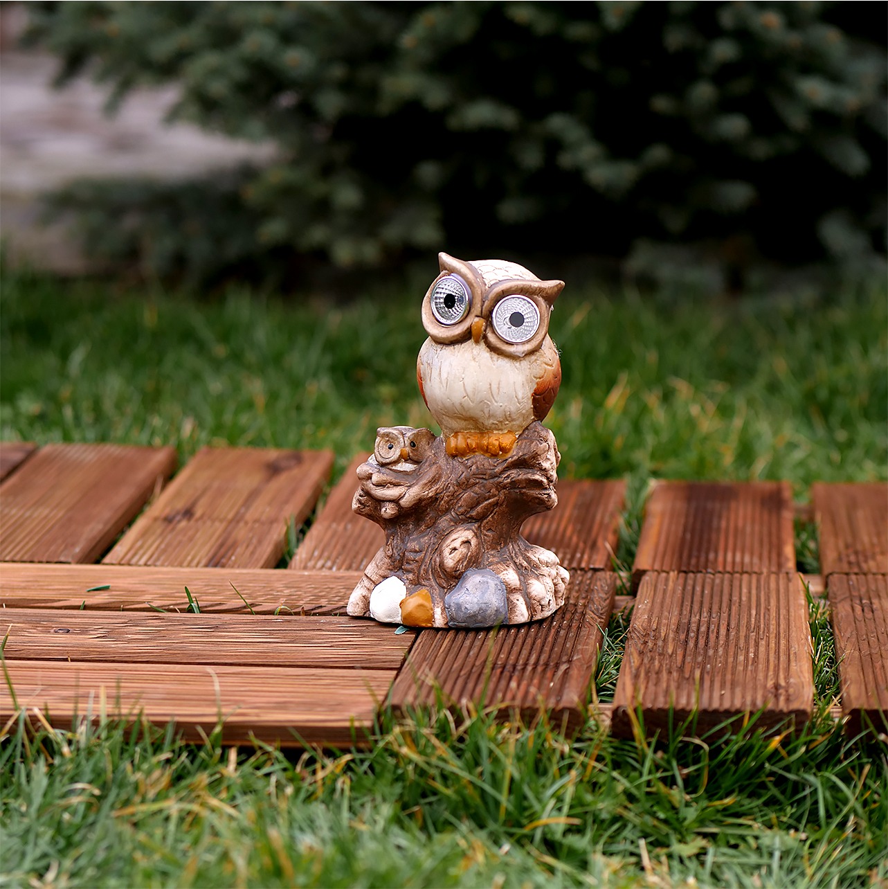 Decoratiune gradina, ceramica, lampa solara, bufnita pe creanga, 11×8.4×18.3 cm