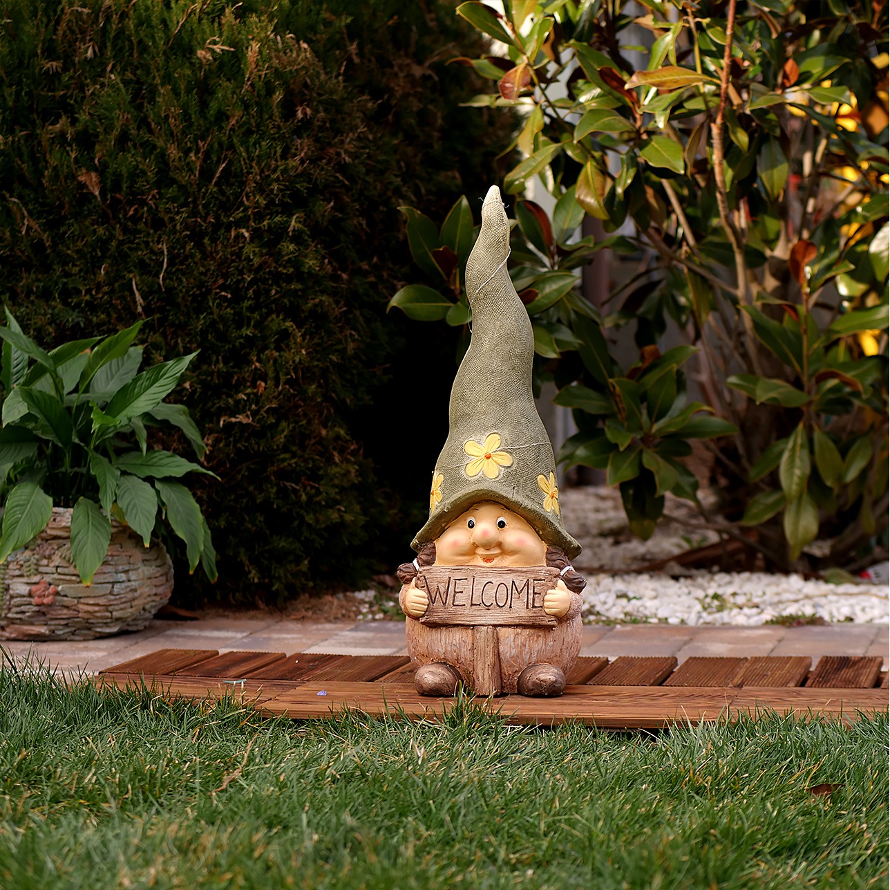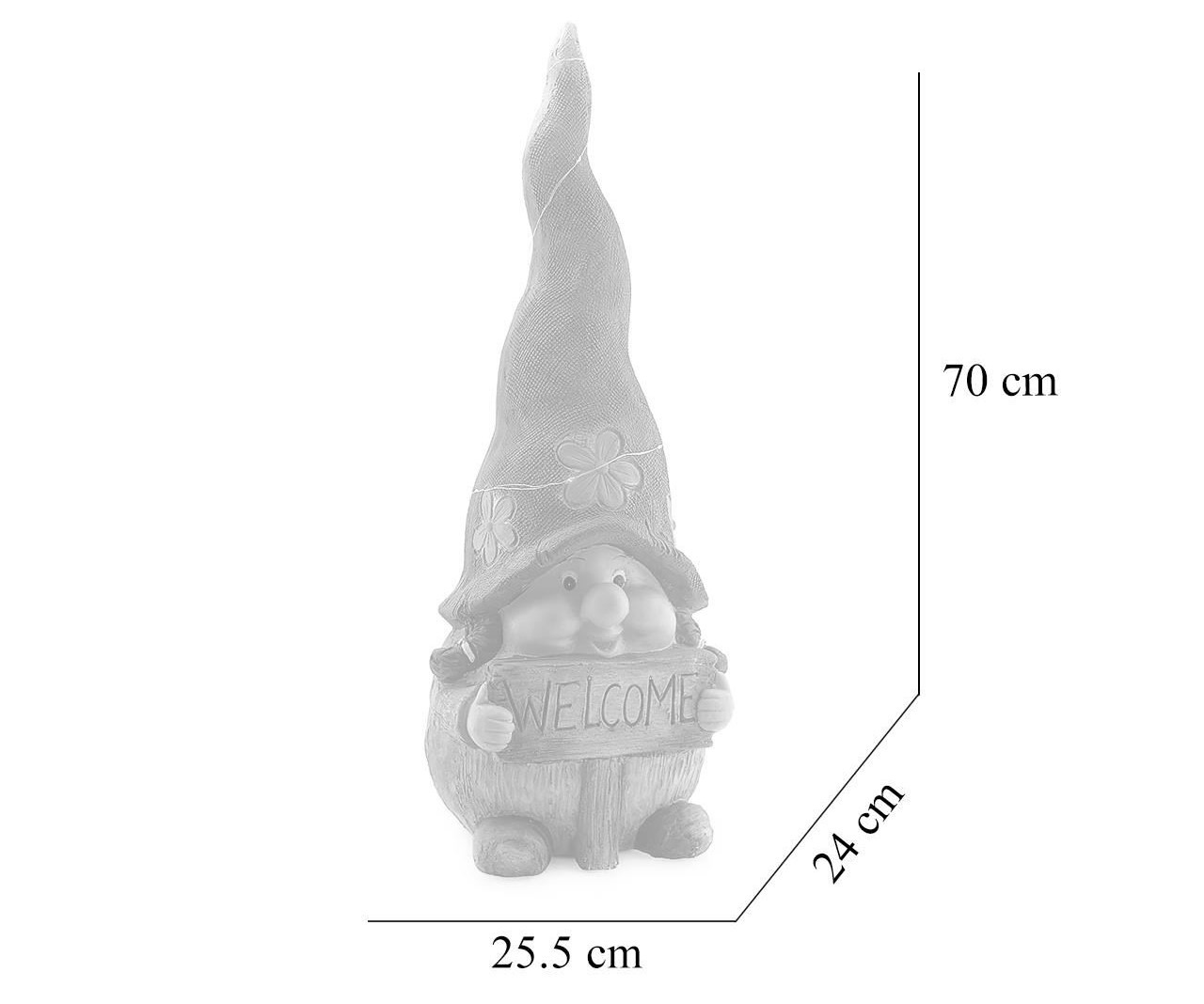 Decoratiune gradina, ceramica, lampa solara, pitic cu tablita welcome, 25.5x24x70 cm