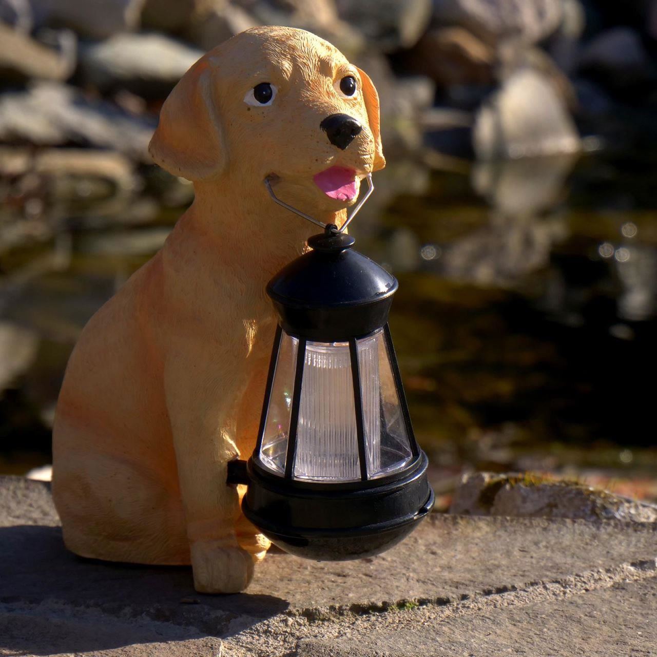 Decoratiune gradina, polirasina, lampa solara, catel cu felinar, 14x24x25 cm