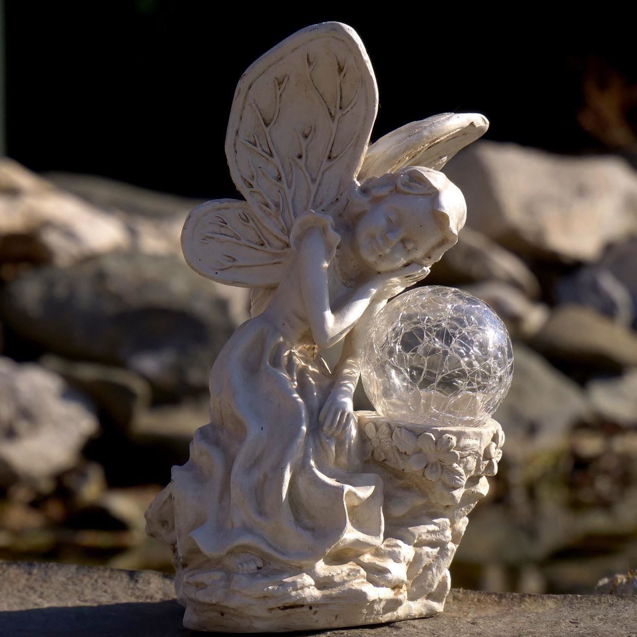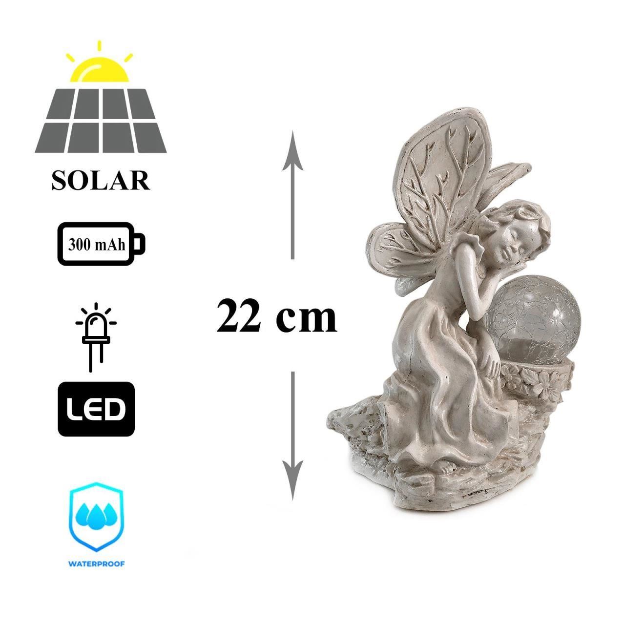 Decoratiune gradina, polirasina, lampa solara, inger, 12x15x22 cm