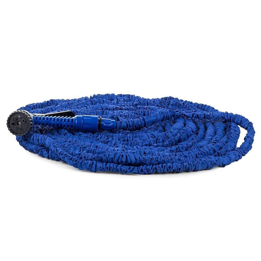 Furtun de gradina, Verk Group, extensibil, cu pistol de stopit, 7 moduri, albastru, 15-45 m