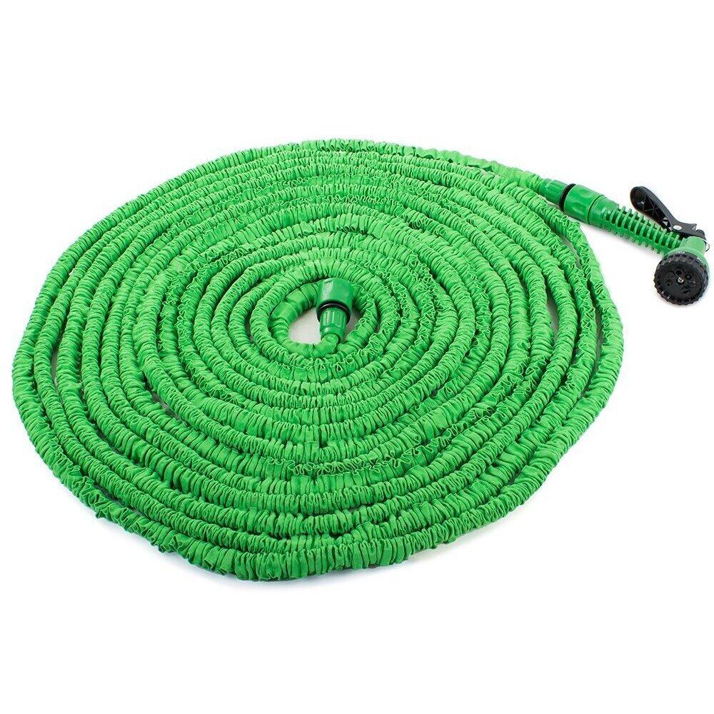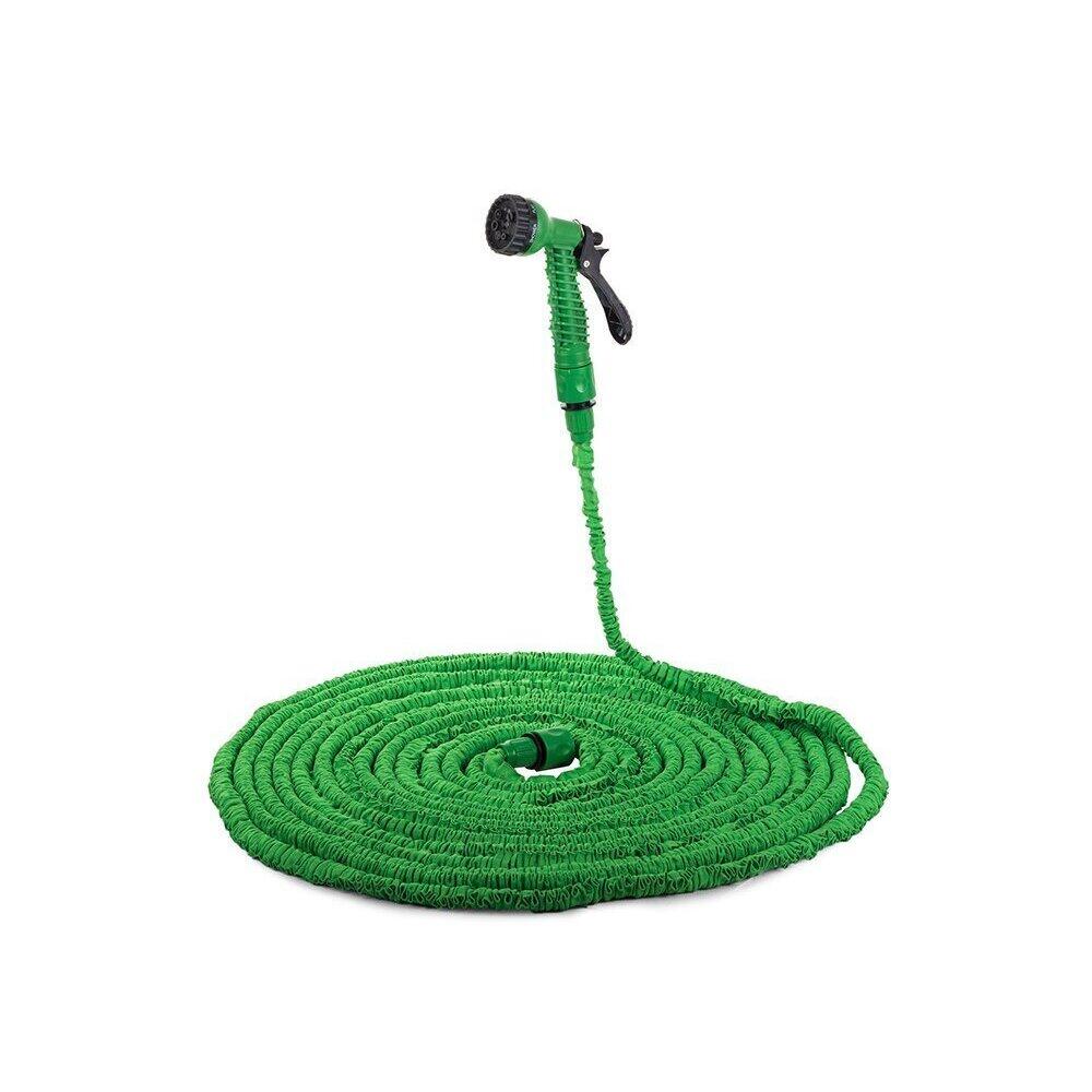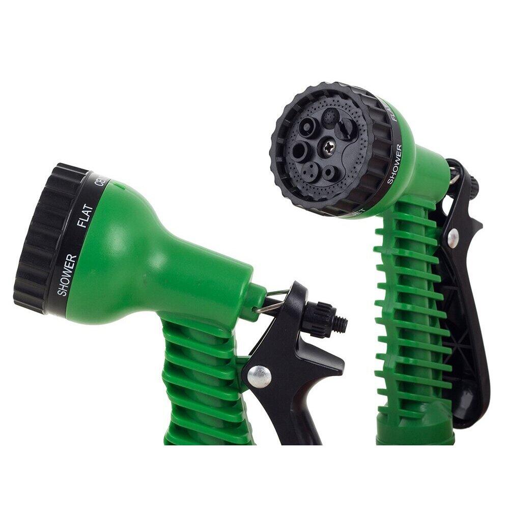 Furtun de gradina, Verk Group, extensibil, cu pistol de stopit, 7 moduri, verde, 20-60 m