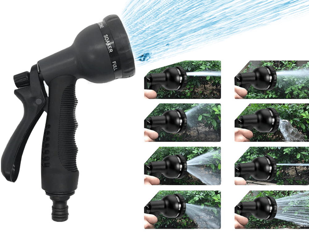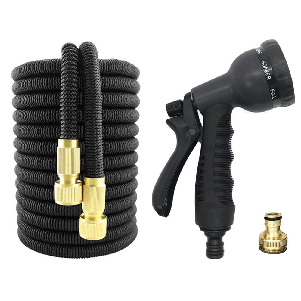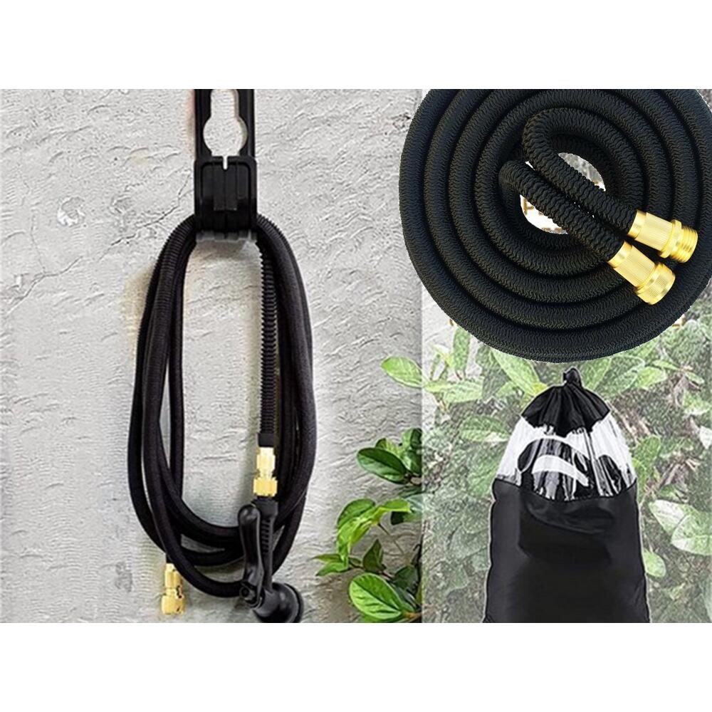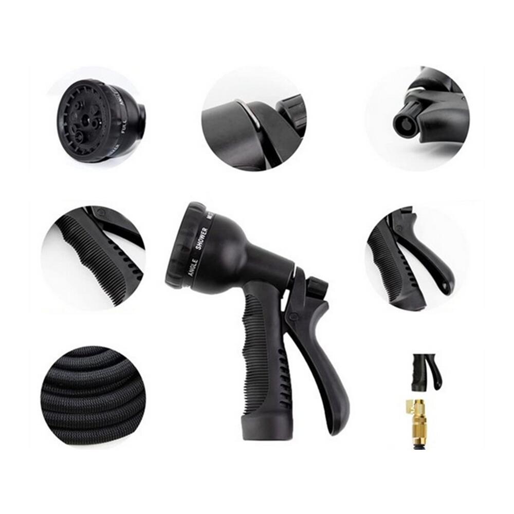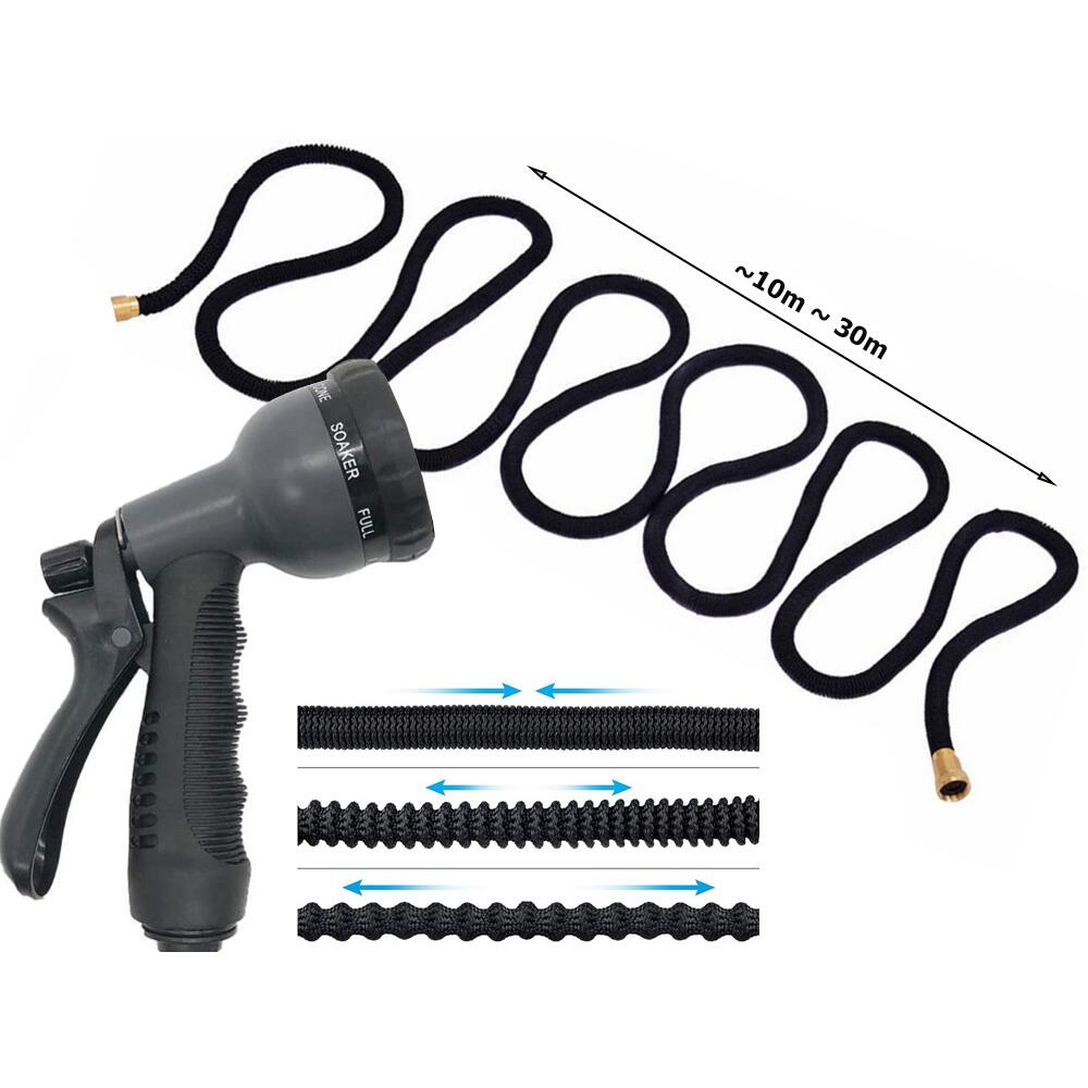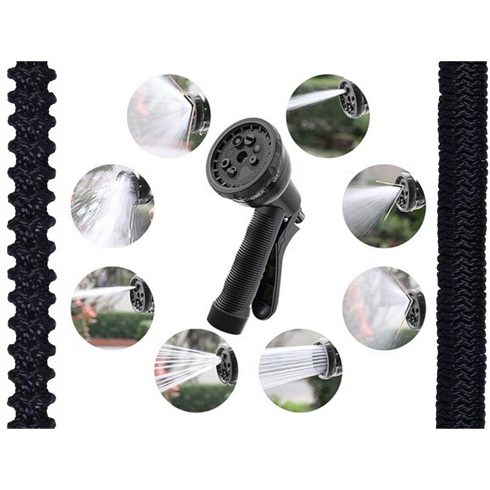 Furtun de gradina, Verk Group, extensibil, cu pistol de stropit, husa, accesorii, 8 moduri, negru, 10-30 m