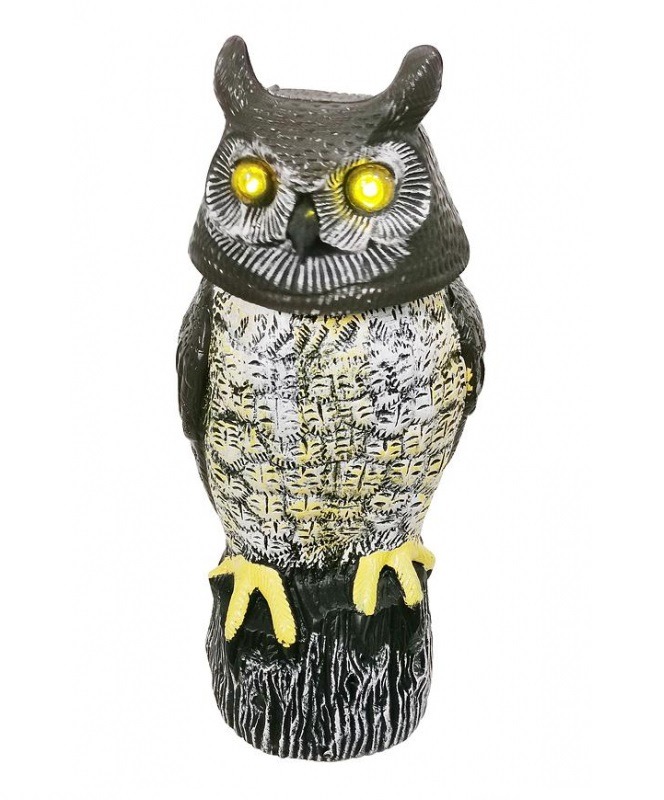 Decoratiune/sperietoare daunatori, solara, bufnita, cu cap rotativ, ochi luminosi, senzor miscare, gri, 43 cm
