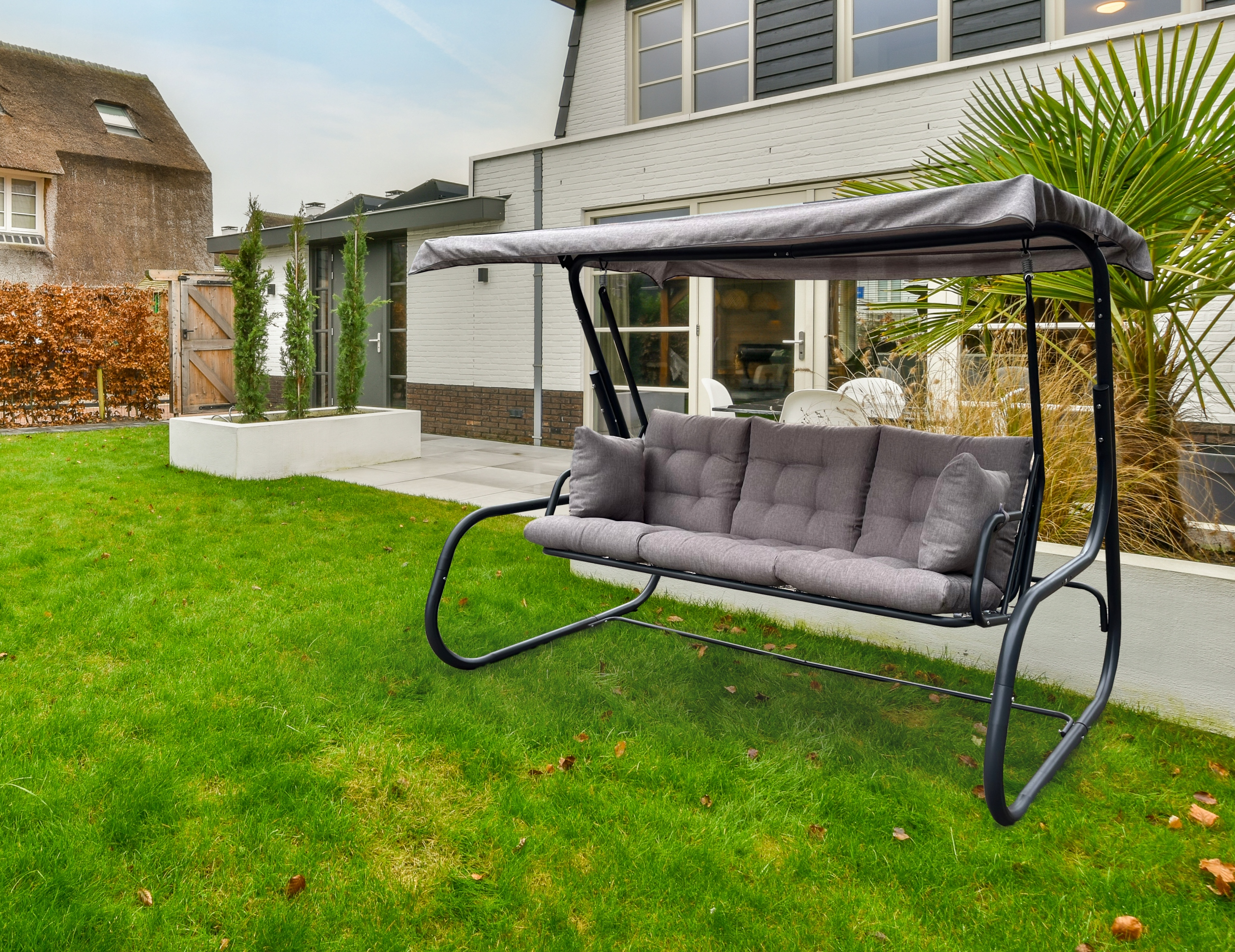 Balansoar gradina, 3 locuri, gri, 215x130x175 cm, perne captusite, max 300 kg, Catania