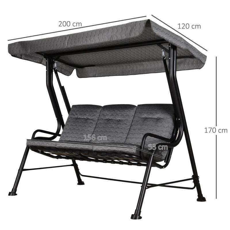 Balansoar gradina, 3 locuri, gri si negru, 200x120x170 cm, perne captusite, max 270 kg, Mauritius