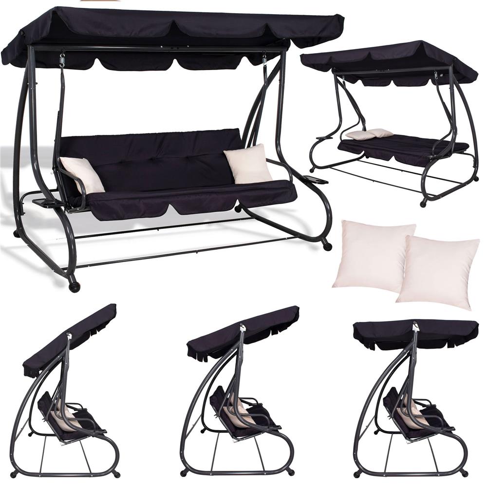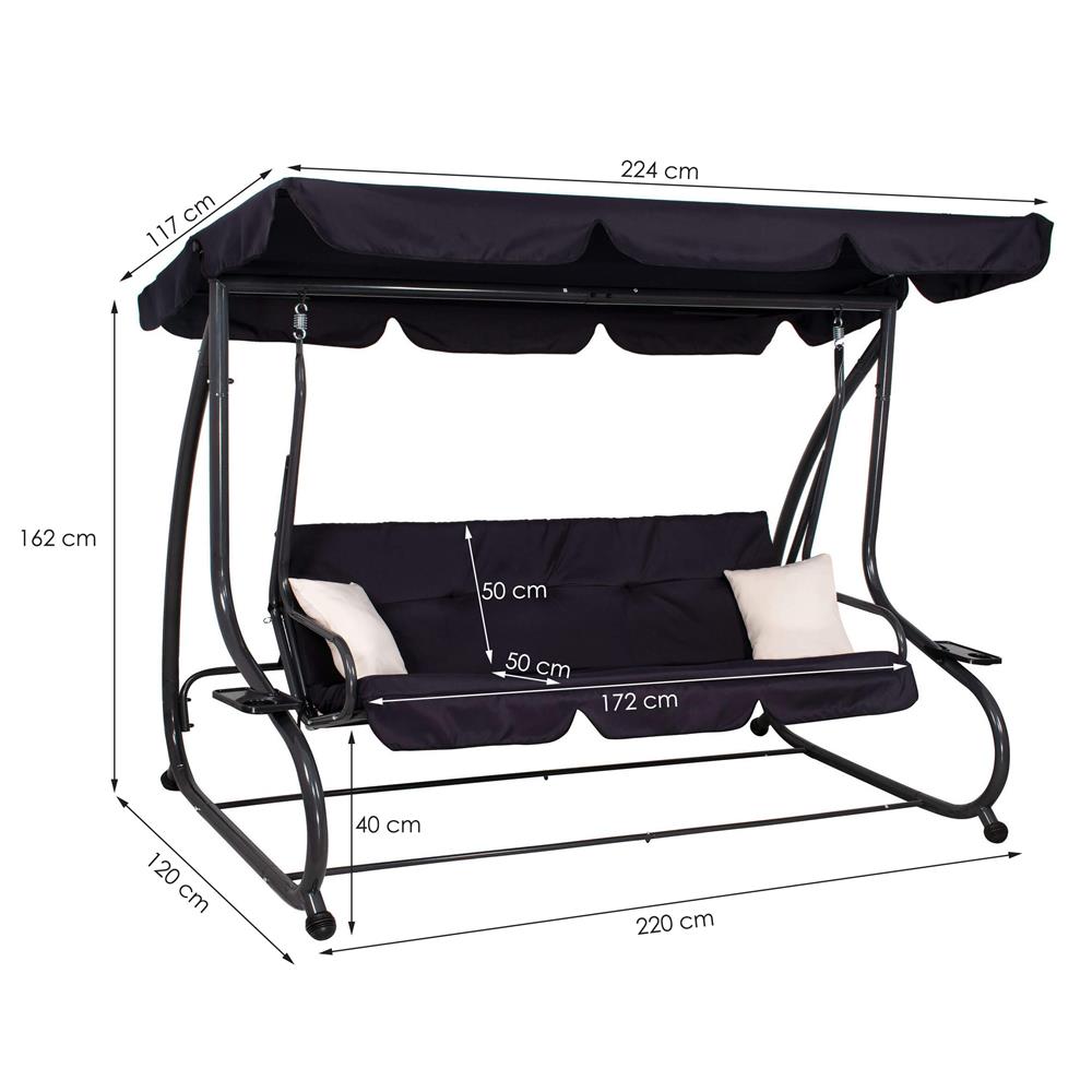 Balansoar gradina, 4 locuri, negru, 220x120x162 cm, functie pat, Linda