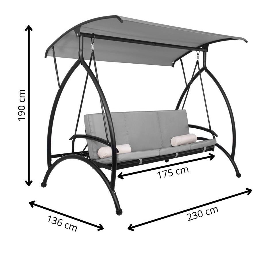 Balansoar gradina, Springos, 3 locuri, gri, 230x136x190 cm, functie pat, max 330 kg, Joko