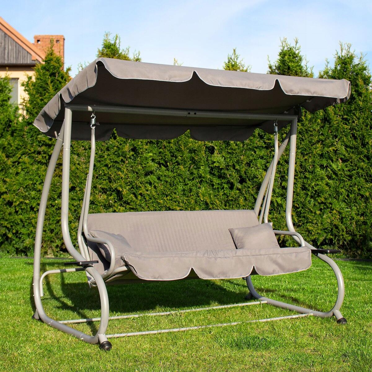 Balansoar gradina, Springos, Venezia, 3 locuri, gri, 190x125x163 cm, functie pat, max 280 kg