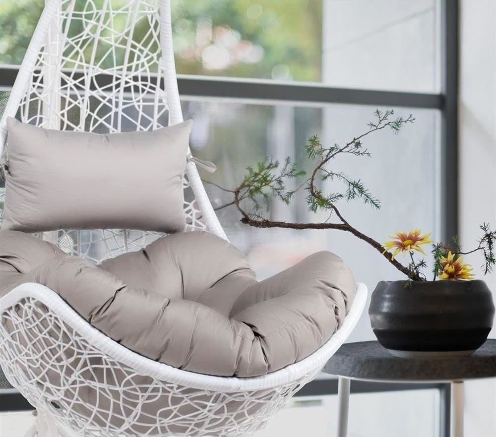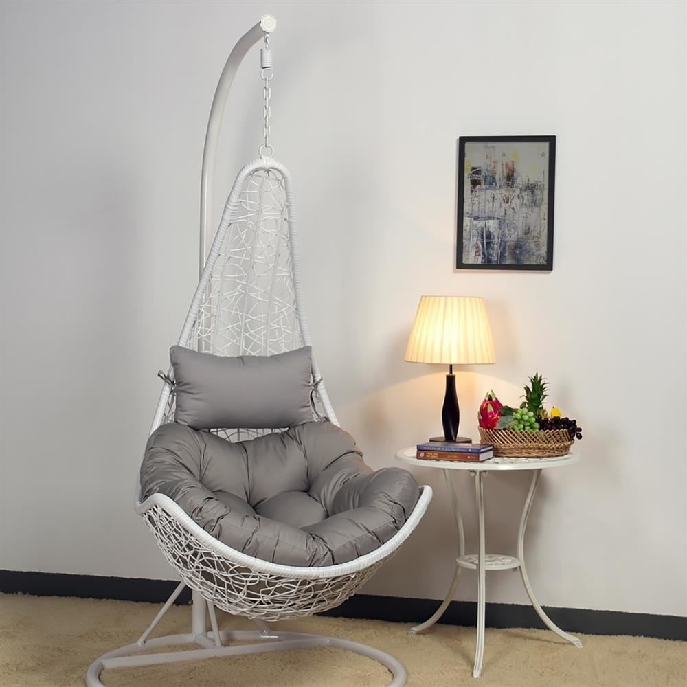 Scaun leagan suspendat, ratan sintetic, alb/gri, max. 150 kg, Jawa