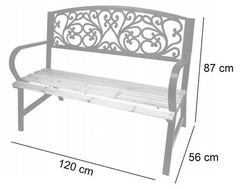 Banca de gradina, metal si lemn, 120x56x87 cm, Adela