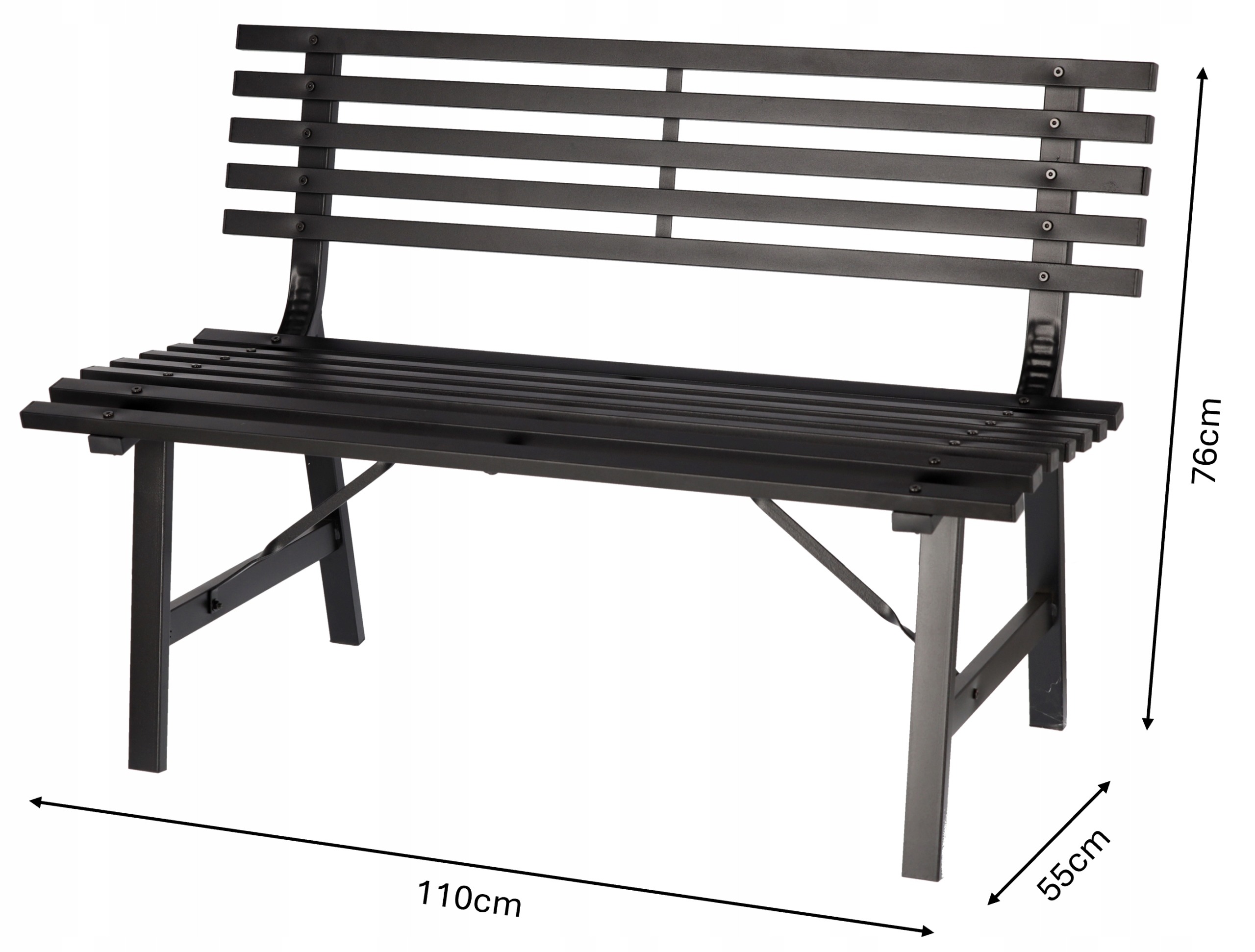 Banca de gradina, structura otel, negru, 110x55x76 cm, Georgia