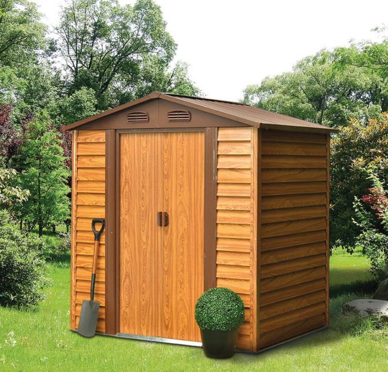 Casuta/magazie/sopron de gradina pentru depozitare unelte, metal, maro natur, 193x152x203 cm, Strend Pro