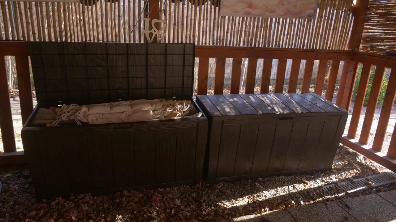 Lada depozitare de gradina, model lemn maro, 117x45x57.5 cm, Keter