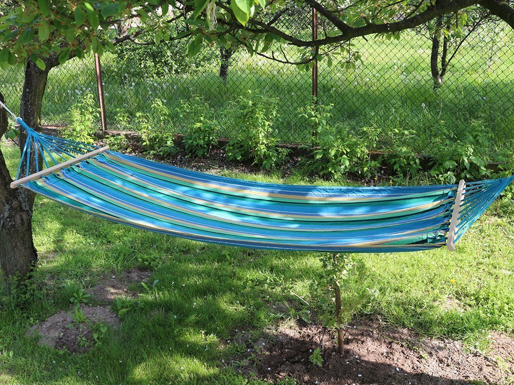 - Este perfect pentru toti carora le place sa-si petreaca timpul liber in sanul naturii. Doar legati cele doua capete ale hamacului de copaci sau stalpi robusti si bucurati-va de confort. Puteti, de exemplu, sa cititi o carte in timp ce va leganati usor in acest hamac moale.