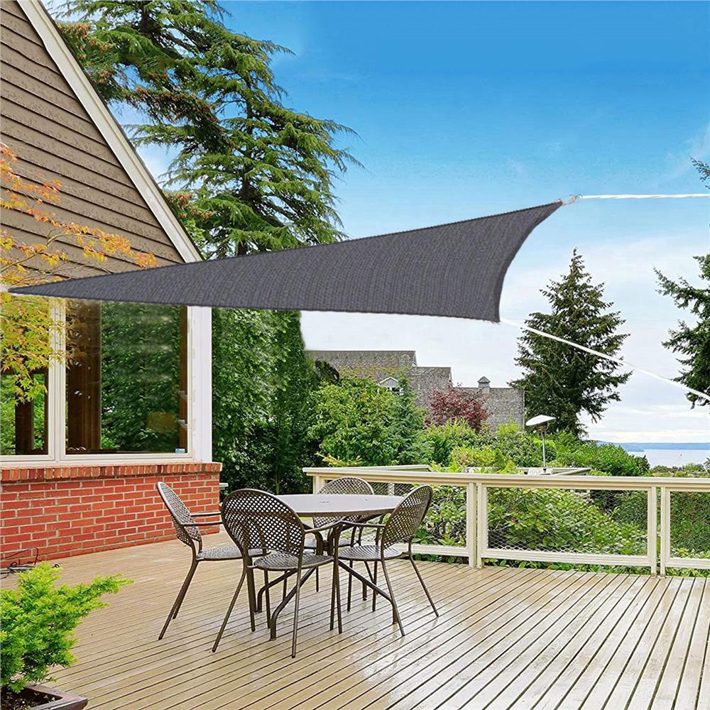 Copertina parasolar, Springos, triunghiulara, cu sfori pentru montare, geanta, inele metalice, gri inchis, 7x5x5 m