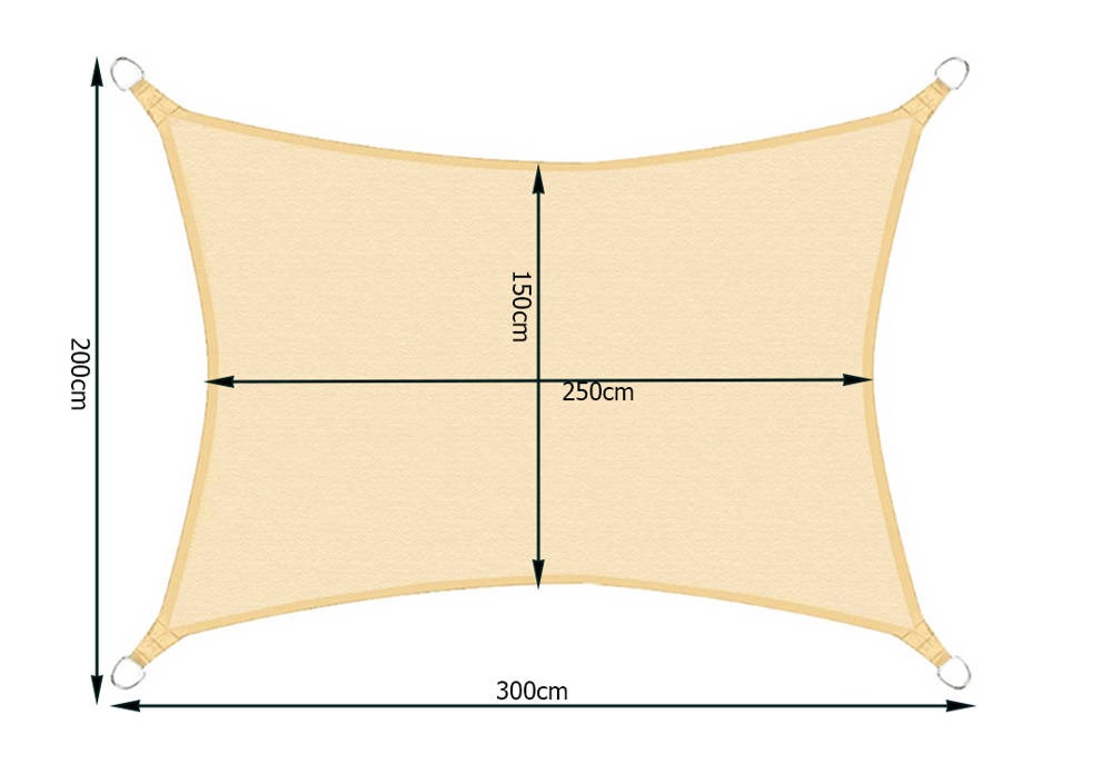 Copertina parasolar, Verk Group, dreptunghiulara, cu 4 sfori, inele metalice, crem, 3×2 m