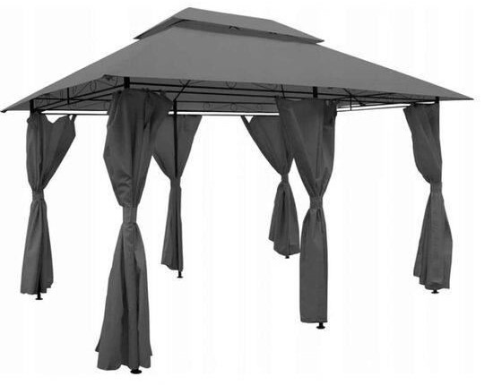 Pavilion/foisor pentru gradina/terasa, cadru metalic, cu plasa de tantari, gri, 4x3x2.65 m