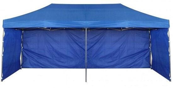 Pavilion pentru gradina/comercial, cadru metalic, 3 pereti, dublu, impermeabil, albastru, 6x3x3.4 m