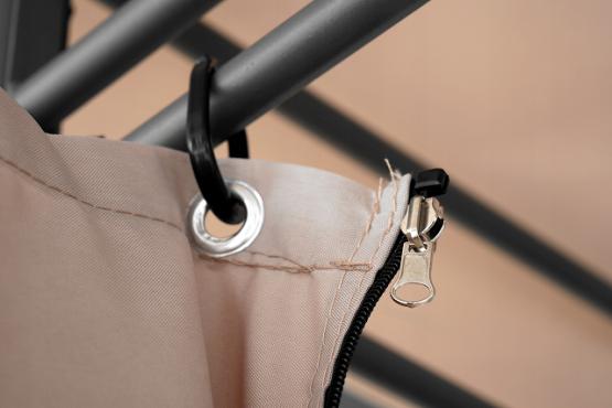 Cadrul este confectionat din materiale anticorozive, iar copertina este din tesatura groasa.