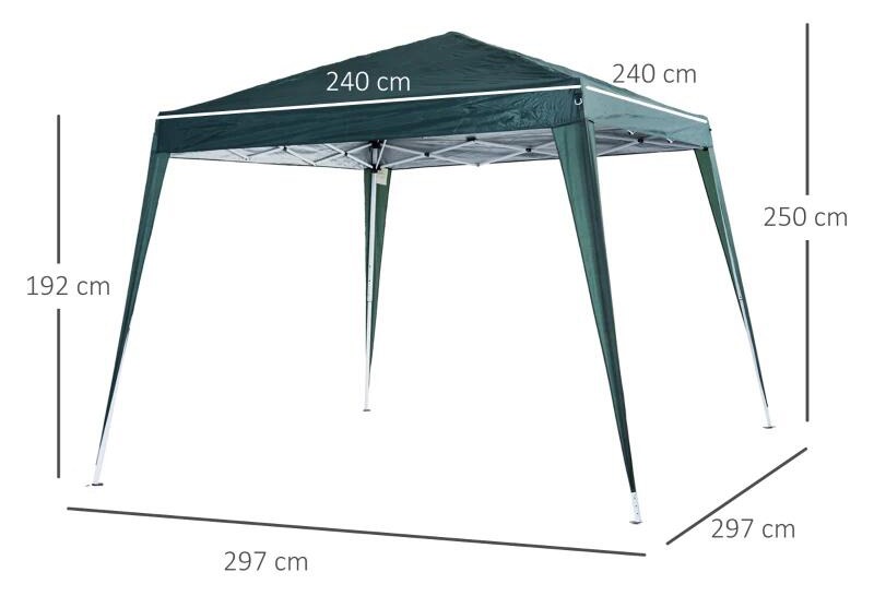 Pavilion pentru gradina/terasa, cadru metalic, material Oxford, pliabil, verde, 2.97×2.97×2.5 m