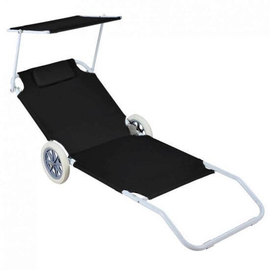 Sezlong de plaja cu roti, negru, 146×53 cm