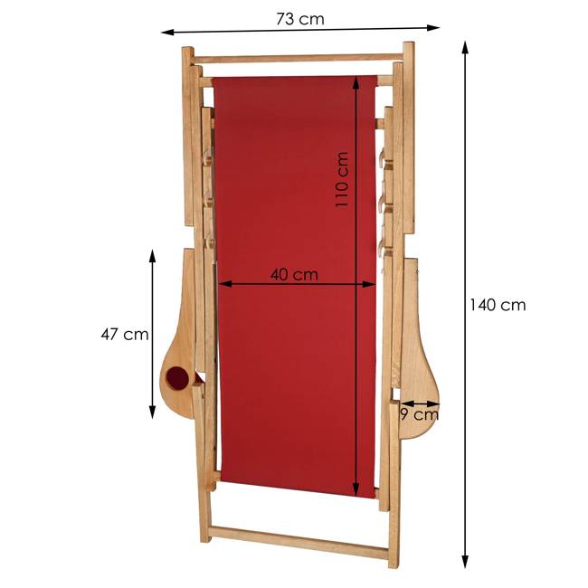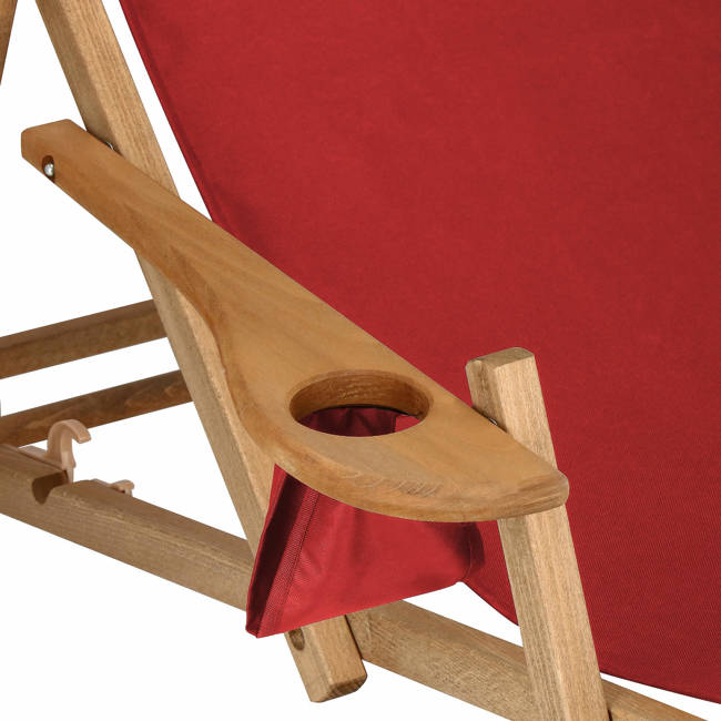 Sezlong pentru gradina, lemn, reglabil, pliabil, suport bauturi, rosu, 73×140 cm, Springos