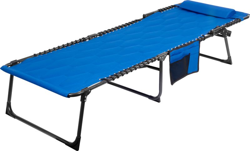 Sezlong pentru gradina, metalic, reglabil, cu tetiera, buzunar lateral, albastru, 188x55x27 cm, Bogota
