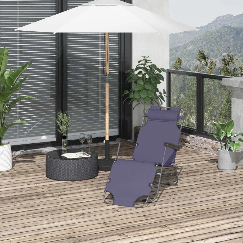 Sezlong pentru gradina, metalic, reglabil, cu tetiera, gri inchis, 135x60x89 cm, Aime