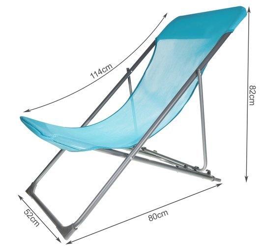 Sezlong pentru plaja, pliabil, reglabil, albastru, max 110 kg, 52x80x82 cm, Malatec