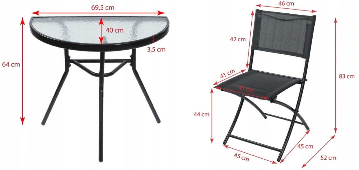 Set mobilier gradina/terasa/balcon, cadru metalic, negru, 1 masa sticla, 2 scaune pliabile