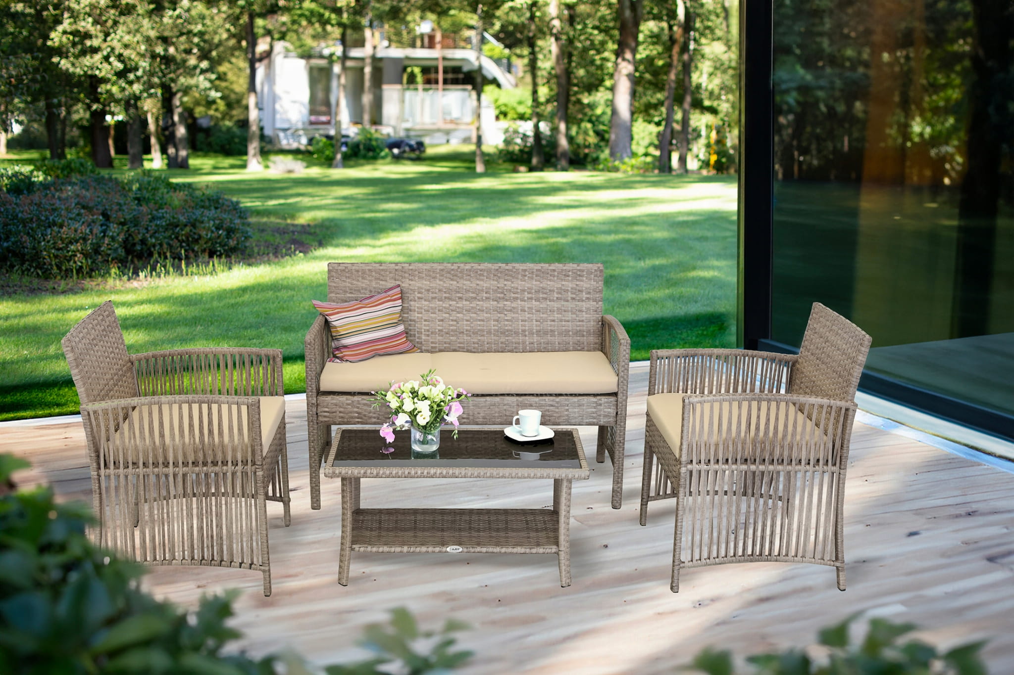 Set mobilier gradina/terasa, bej, 1 masa, 2 scaune, 1 canapea, Jumi