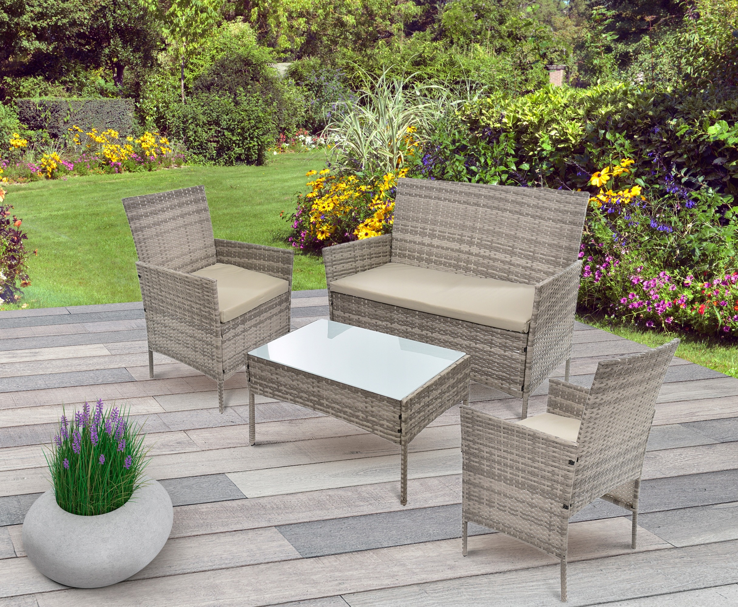 Set mobilier gradina/terasa, bej, ratan, 1 masa, 2 fotolii, 1 canapea, Mokka