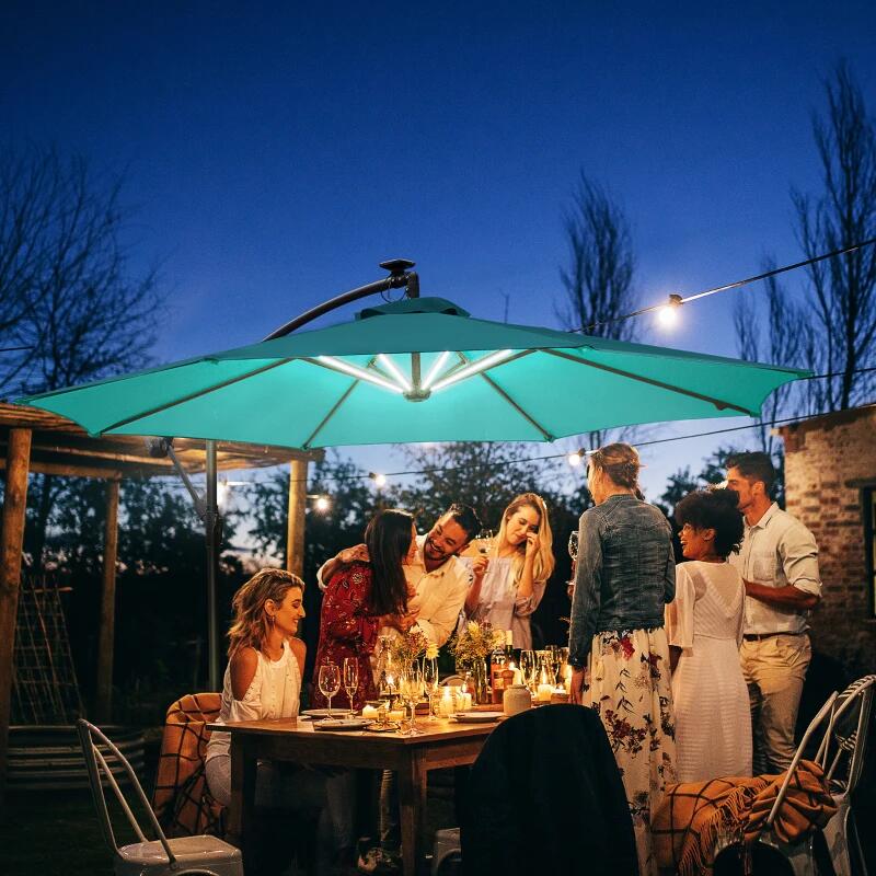 Umbrela gradina/terasa cu panou solar, iluminare LED, articulatie tip banana, manivela, verde, 295 cm