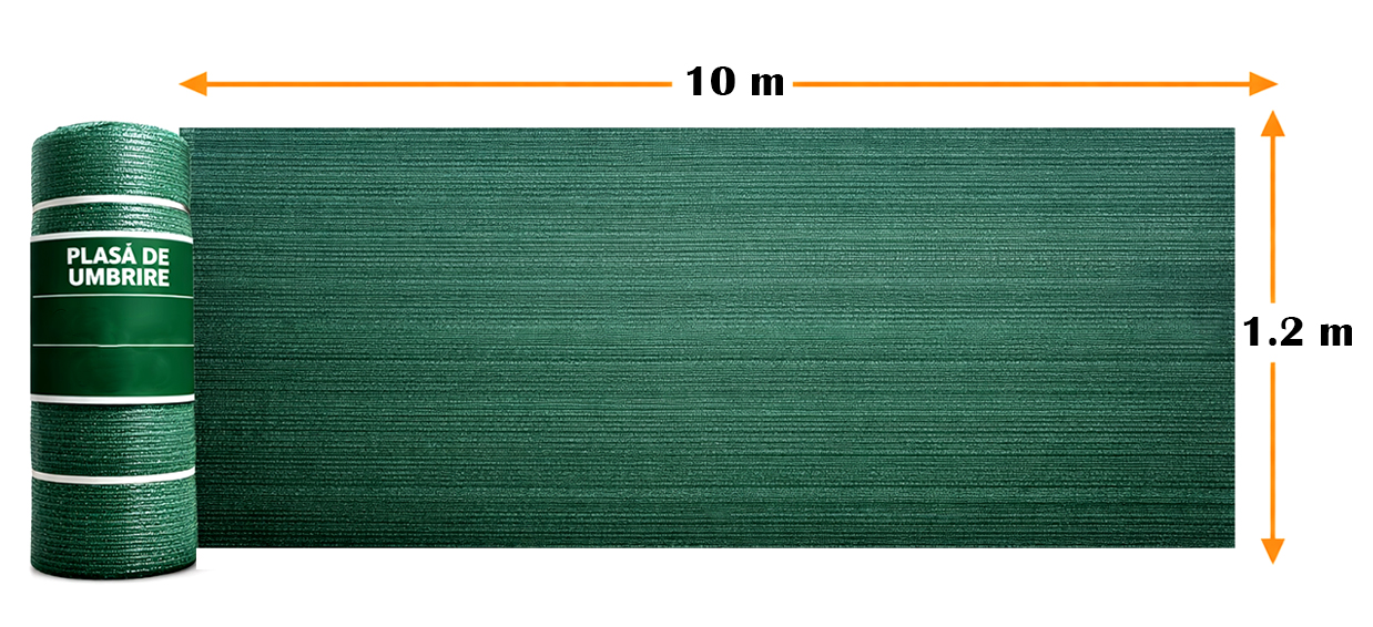 Plasa de umbrire, HDPE, 140 g/mp, grad de umbrire 85%, verde, 1.2×10 m
