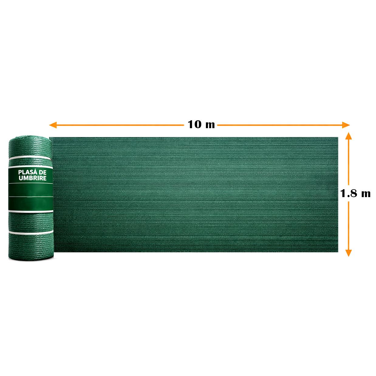 Plasa de umbrire, HDPE, 80 g/mp, grad de umbrire 80%, verde, 1.8×10 m