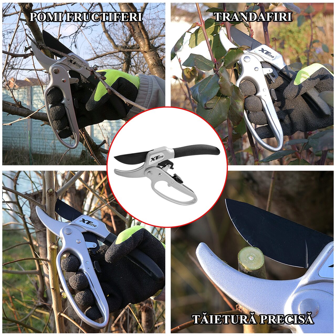 Foarfeca gradina, tip ghilotina, cu clichet, pentru vita vie, pomi, trandafiri, otel japonez sk-5, 20 cm, XTline