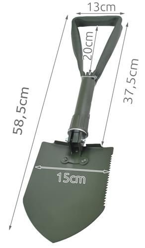 Poate fi folosita ca lopata, tarnacop sau fierastrau.