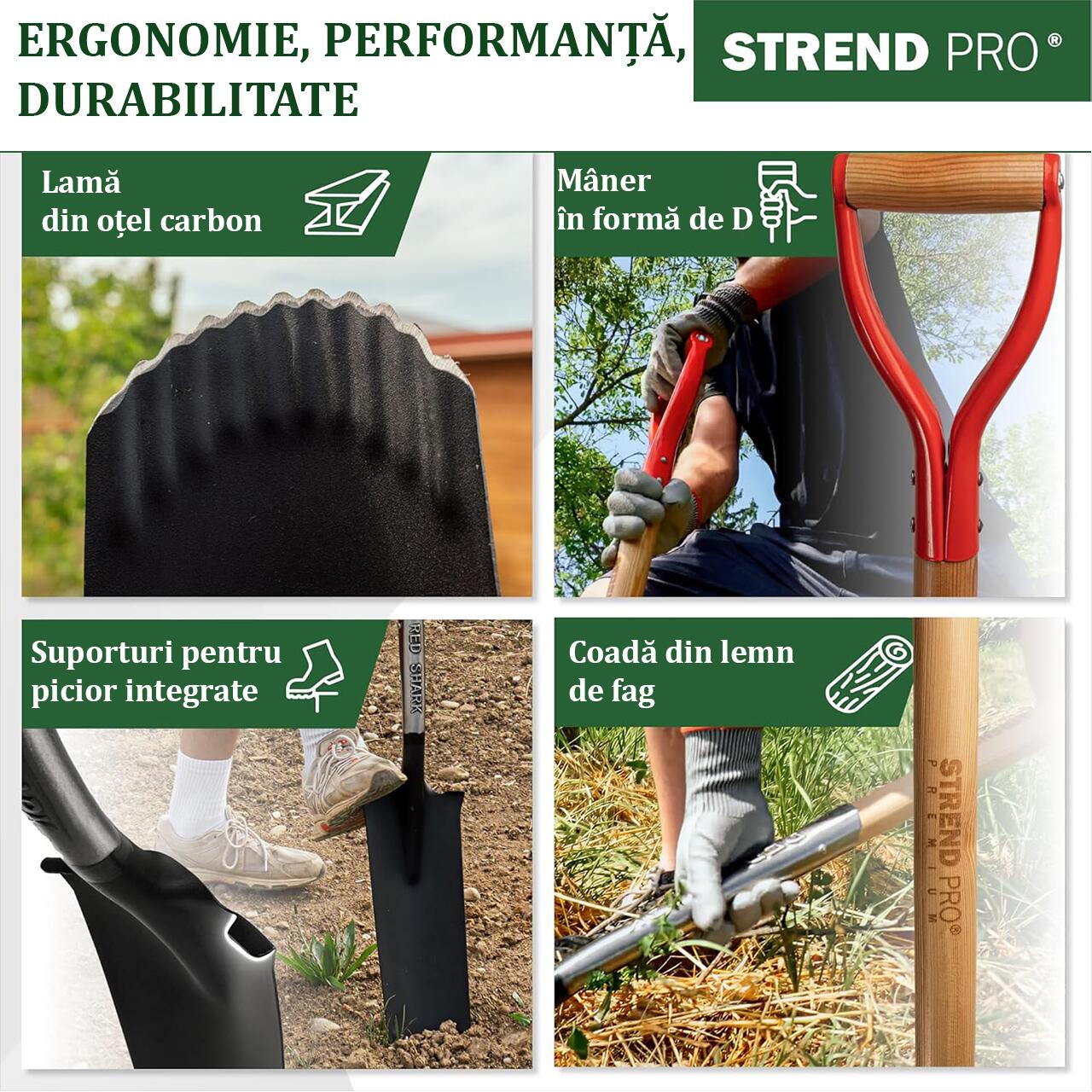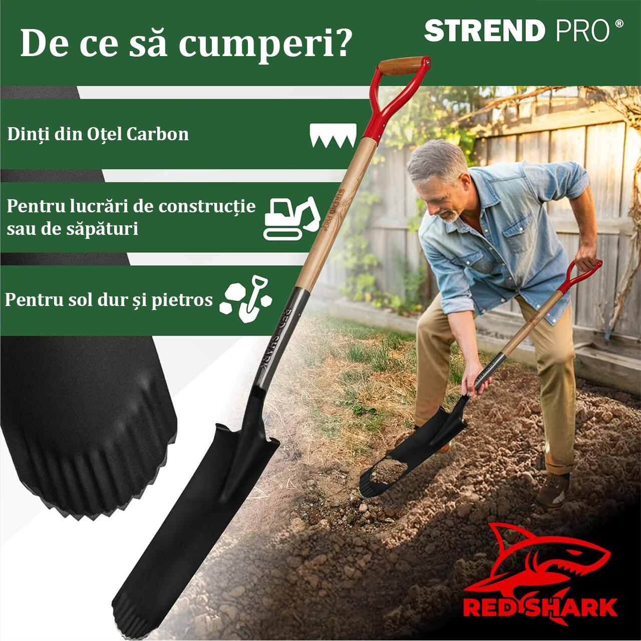 - 1 x Harlet, cazma, ingust, cu varf zimtat, coada lemn, 12.5x40x128 cm, Strend Pro Premium RedShark
